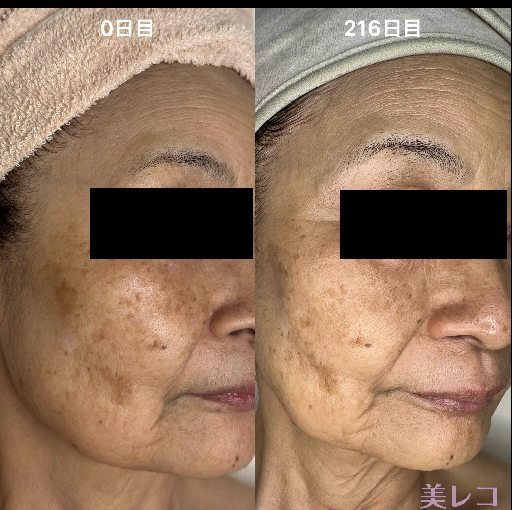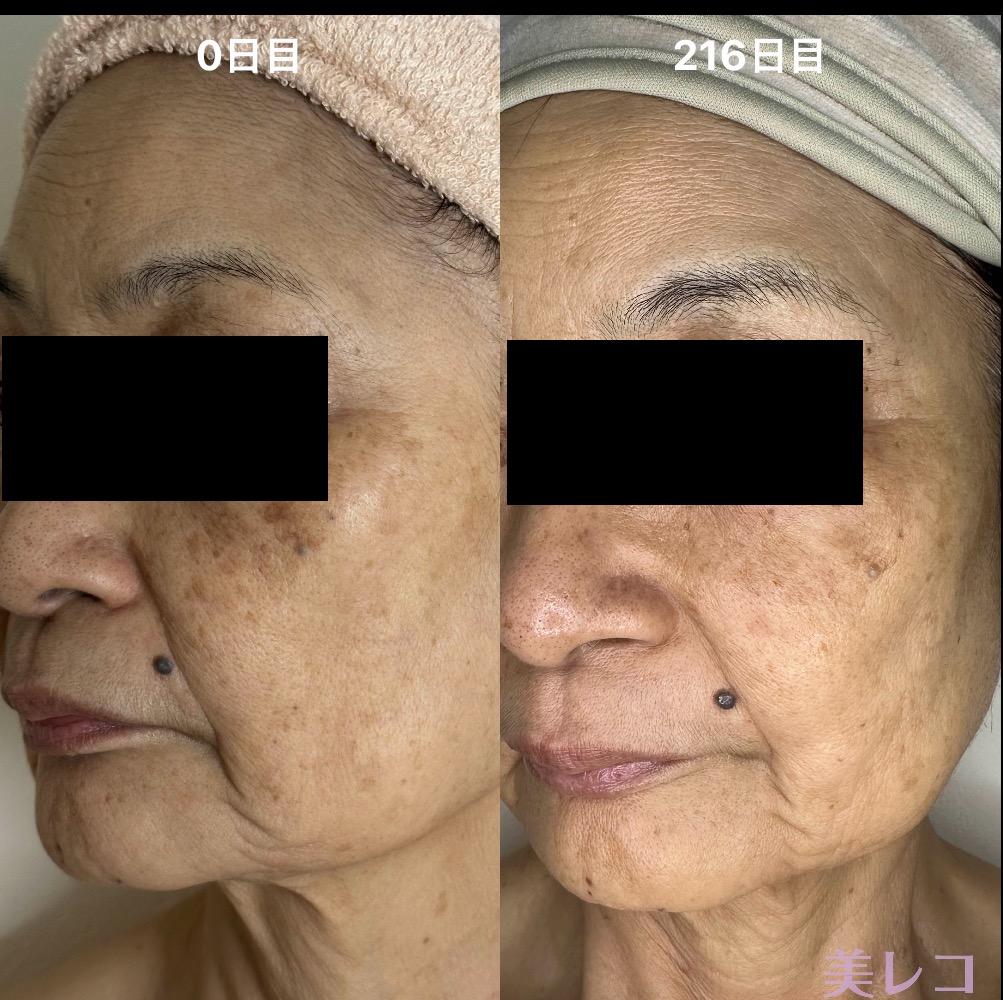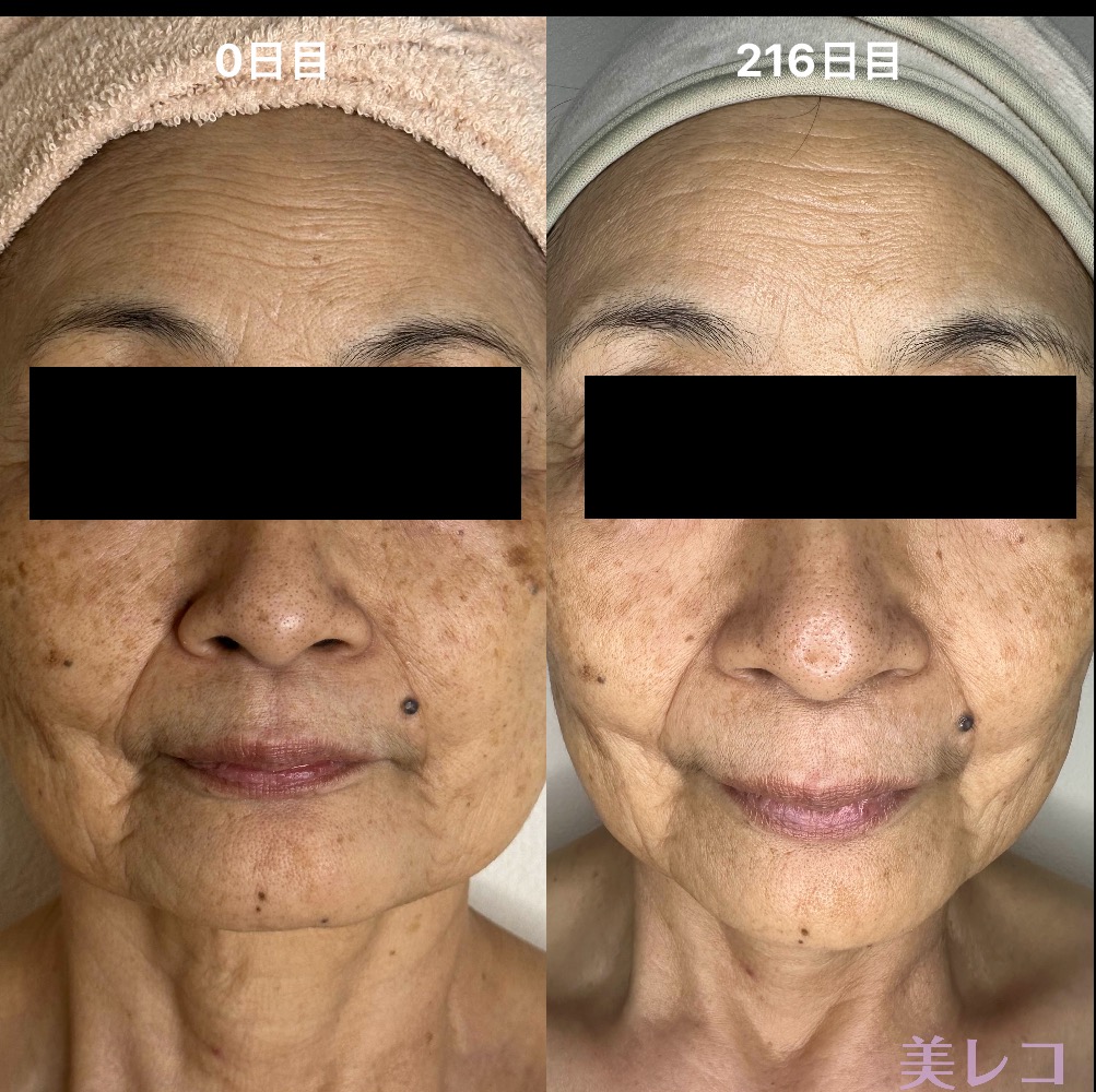 シミの濃さ・大きさ、フェイスラインのたるみやほうれい線、肌の質感まで大きく変わりました。